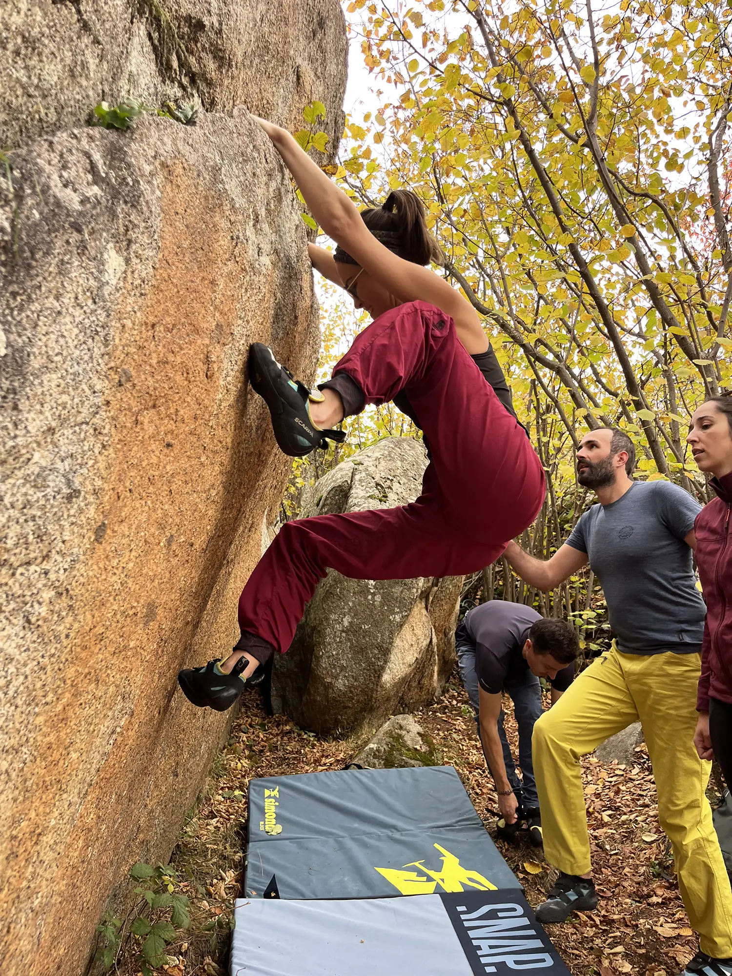 Ces blocs, composés d’un granit rugueux jaune rougeâtre, sont un véritable paradis pour les grimpeurs. Le style varie considérablement d’un bloc à l’autre, allant de puissants toits à de délicates dalles, en passant par des réglettes et des prises inclinées.